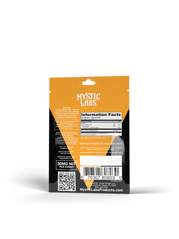 Mystic Labs™ 5ct Kratom Gummies deliver the all-encompassing effects of Kratom in a bite-sized edible. Our Kratom-infused gummies feature a delicious blood orange flavor and contain a max-strength 30mg serving of Mitragynine (MIT) per gummy.