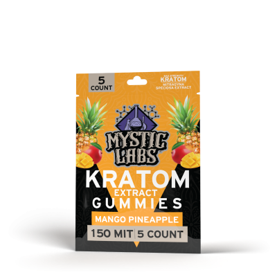 Mystic Labs™ 5ct Kratom Gummies deliver the all-encompassing effects of Kratom in a bite-sized edible. Our Kratom-infused gummies feature a delicious blood orange flavor and contain a max-strength 30mg serving of Mitragynine (MIT) per gummy. Product Info 30mg of Mitragynine (MIT) per gummy 5 gummies per bag 150mg of Mitragynine (MIT) per bag Mango Pineapple flavor Tested by Indpendent Labs Manufactured in the USA
